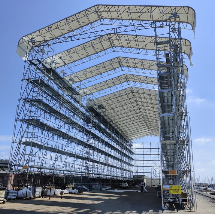 Sistemas modulares projetados para coberturas e proteções temporárias